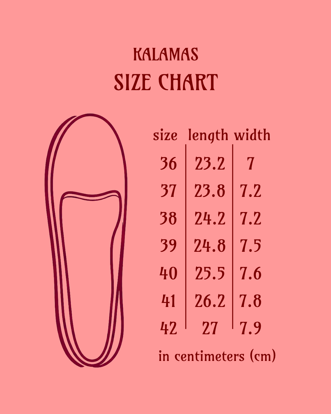 *If your size is not available, you can text us via mail kalamas.studio@gmail.com or via Instagram. We will see what we can do to make a pair for you!